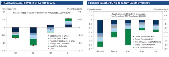 此外,该机构也认为,疫情对欧洲也会产生较大的影响,拖累一季度和二季度的经济增长。其中,德国经济受到的影响将最大,该国将被全球增速疲软拖累,同时产业链的破坏也会使其受到影响;疫情较为严重的意大利也会深受影响。