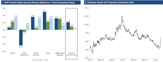 有观点认为,此前美国刚宣布新冠病毒检测可以纳入低收入医保的费用,预计可以促进全面新冠疫情的检测,但是新增确诊人数或上升。相较于年初,高盛研究部将美国2020年经济增速预期大幅下调,并预计全球实际GDP增速为2%。